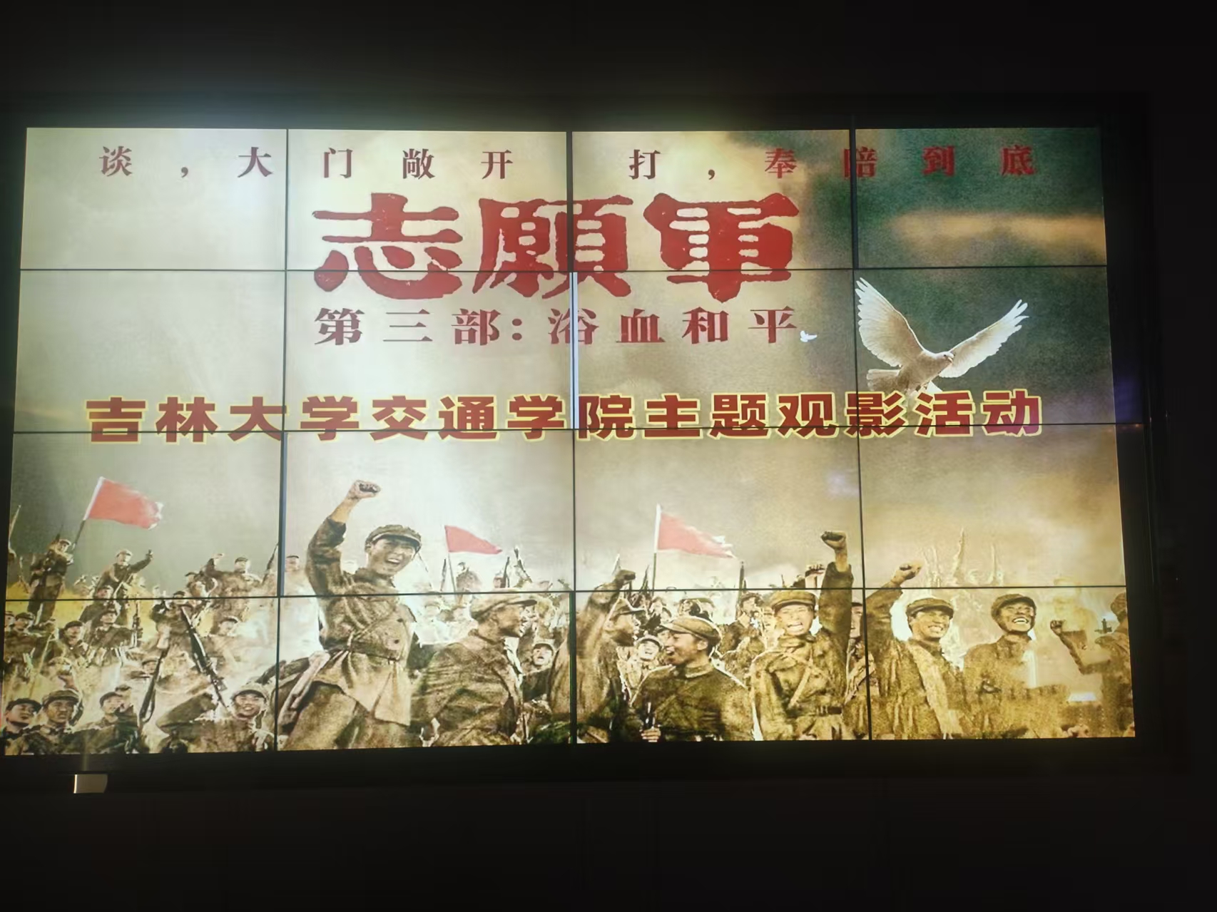 组织教职工和学生代表开展爱国主义主题教育活动,集体观看抗美援朝题材电影《志愿军:浴血和平》。影片聚焦1953年抗美援朝战争最后阶段的“金城战役”,真实还原了志愿军在极端艰苦的条件下坚守阵地、争取和平的历程,通过战士群像刻画展现了黄继光、邱少云等英雄人物的事迹,深刻传递了爱国主义、集体主义、革命英雄主义等精神内核。