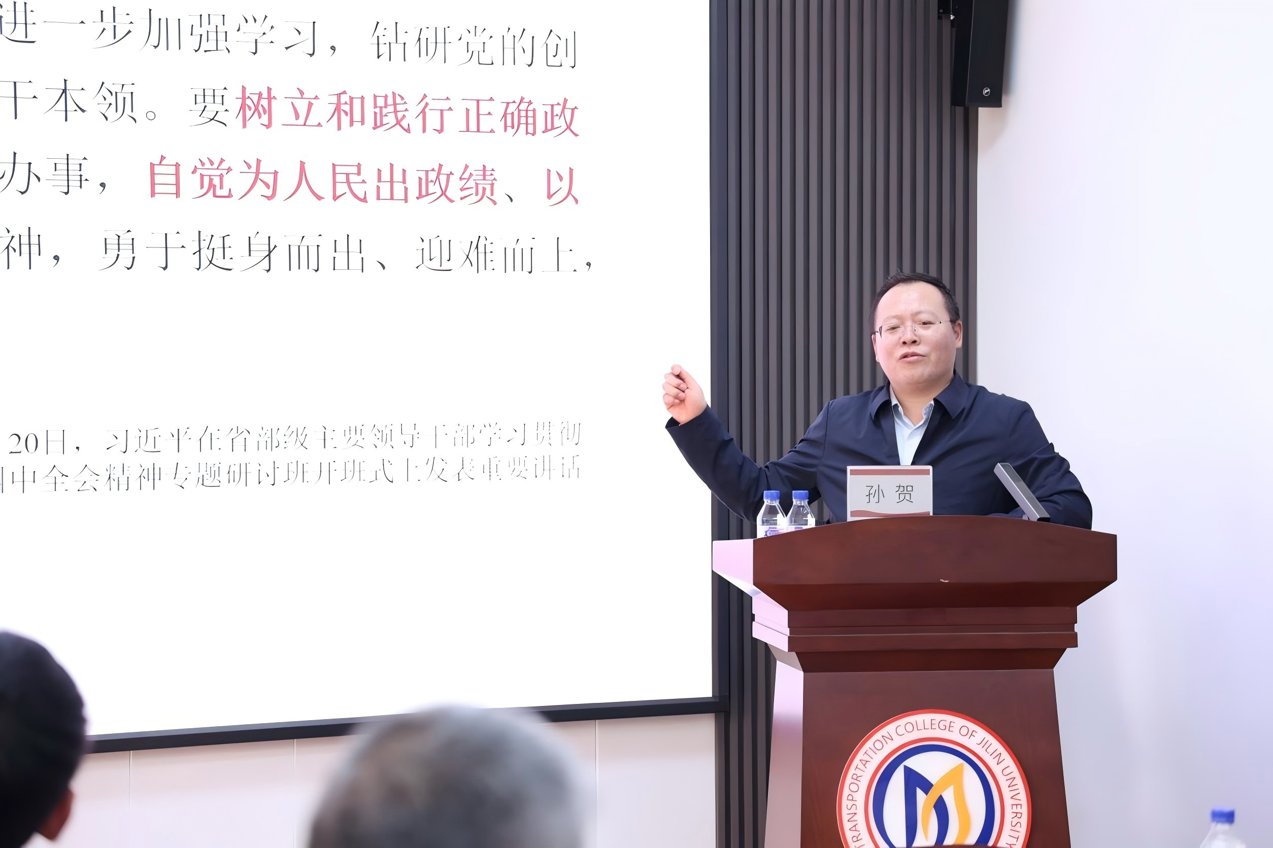 马克思主义学院教授孙贺作题为《政绩观问题是一个根本性问题》的专题辅导。